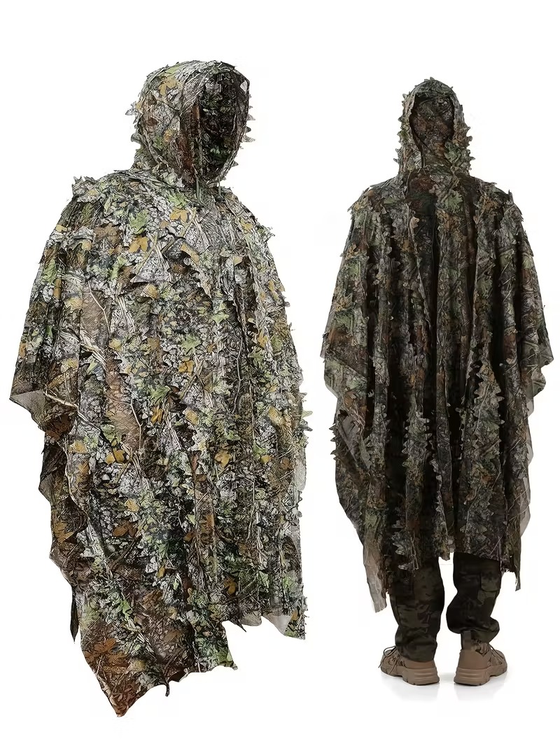 One Size Fits Most 3D Leafy Camo Hooded Cape Costume - Breathable Polyester Mesh